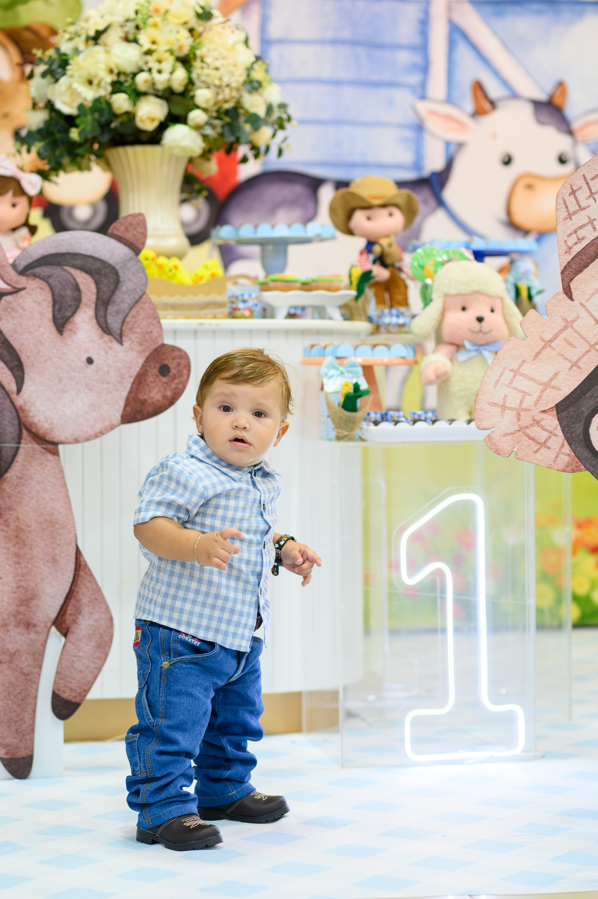 Estivemos presentes na doce espera da mamãe, acompanhamos cada fase do seu crescimento mês a mês e hoje celebramos seu primeiro ano, rodeado de amor, descobertas e sorrisos que contam uma história inteira.